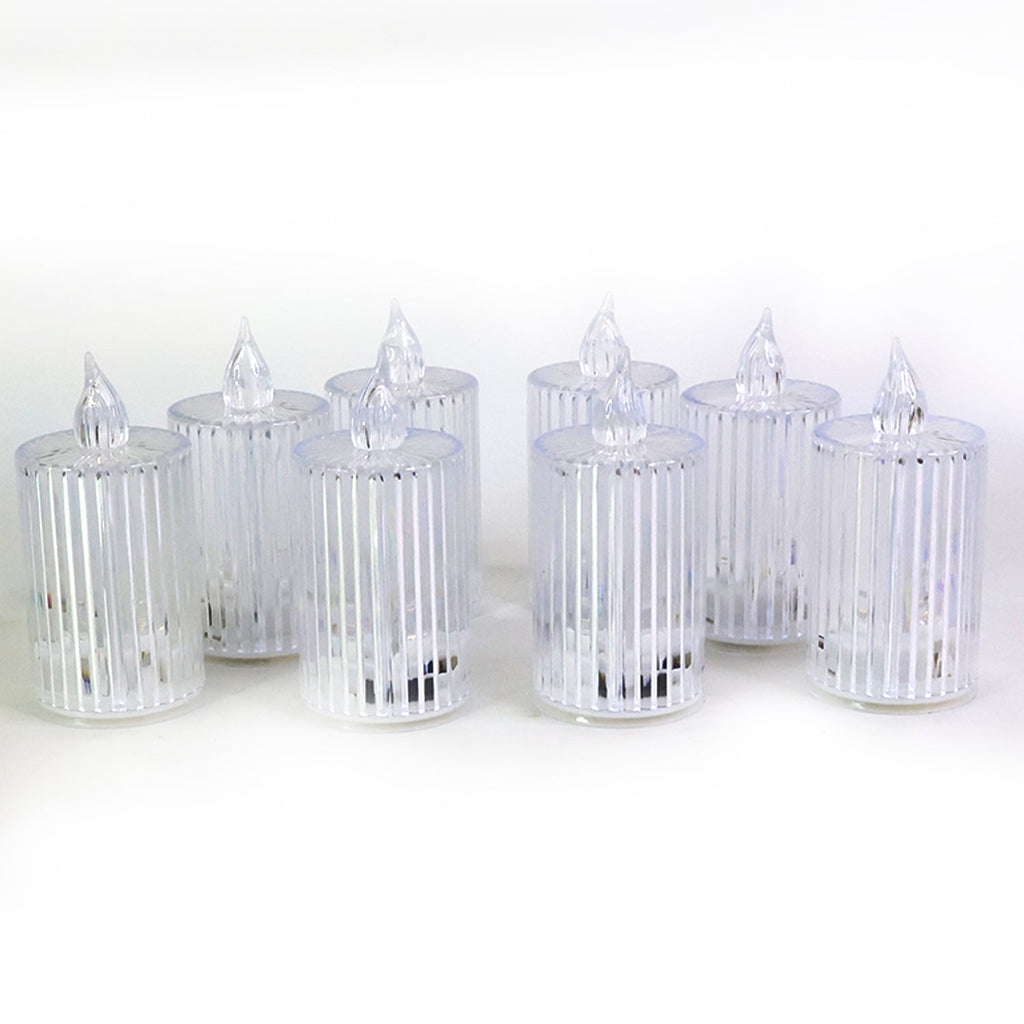 Premium Crystal Effect LED Flameless Candle Lights Set of 8 – Decorative Flickering Candles for Home, Parties, Weddings, Festive & Ambient Lighting, Diwali Item